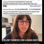 Playback speed×Share postShare post at current timeShare from 0:000:00/0:004🚨NOR'EASTER IS (AND HAS BEEN) LOADED UP WITH TRAILS. EASTERN U.S.A. - BE CAUTIOUS. WATCH OUT FOR FLOODING along the eastern seaboard of the U.S. Ariana MastersOct 13, 20254ShareThanks for watching!CONSULTATIONSAriana Masters·Jun 30Got questions, theories, or just want to talk it out? Let’s chat — geoengineering, politics, or whatever’s on your mind :) See you soon!Read full storyDiscussion about this videoCommentsRestacksNEWS REPORTSVideos on Current EventsVideos on Current EventsSubscribeAuthorsAriana MastersRecent Posts🚨CALIFORNIA, OREGON AND WASHINGTON - YOUR INCOMING 'WINTER STORM' IS LOADED WITH TRAILS4 hrs ago • Ariana Masters🚨ITALY IS LOADED UP WITH TRAILS TODAY. BE WEARY OF POTENTIAL FLOODING WITHIN THE NEXT 24-48HRS (same with Spain and Portugal). 4 hrs ago • Ariana MastersFL AIRPORTS BAN WEATHER MOD AIRCRAFT: I spoke with operations and recorded the callOct 9 • Ariana MastersCongressman Thomas Massie Thanks Gov. Shutdown for Lack of C*trails In His AreaOct 4 • Ariana Masters**FULL VIDEO** Refugee Stabbed on Train- Media Silent Until Now [WARNING: SENSITIVE CONTENT]Sep 10 • Ariana MastersFrance Abandons Mother/Son Killer Whales & 12 Dolphins at Closed Marine Park - WE CAN FIX THISAug 21 • Ariana MastersWILL ERIN SHIFT TOWARDS LAND? Nexrad is letting up activity on the eastern seaboard, possibly opening up an opportunity for some intrusion. Aug 20 • Ariana Masters
